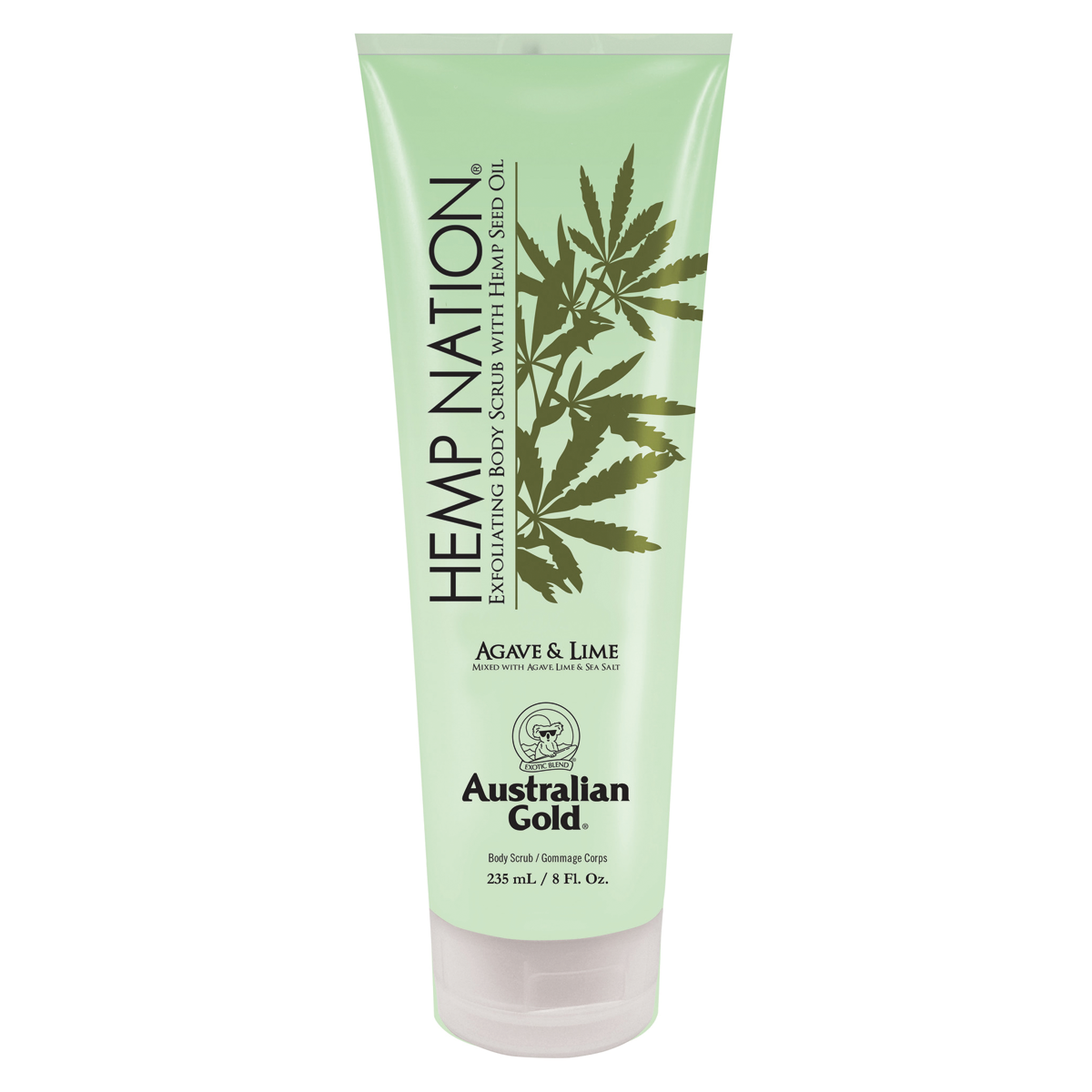 Australian Gold 'Hemp Nation Body Scrub' bevat onder meer speciaal geselecteerd fijngemalen puimsteen om een wat ​​ruwere en/of droge huid optimaal te scrubben zodat je veel mooier, dieper en sneller bruint. Een overheerlijke mix van Agave, zeezout en limoen met krachtige antioxiderende eigenschappen voedt, verzorgt en beschermt. Pure hennepzaadolie draagt bij aan een zachte en goed gehydrateerde huid. Heerlijk frisse ‘Agave & Limoen' geur. Tube 235 ml.