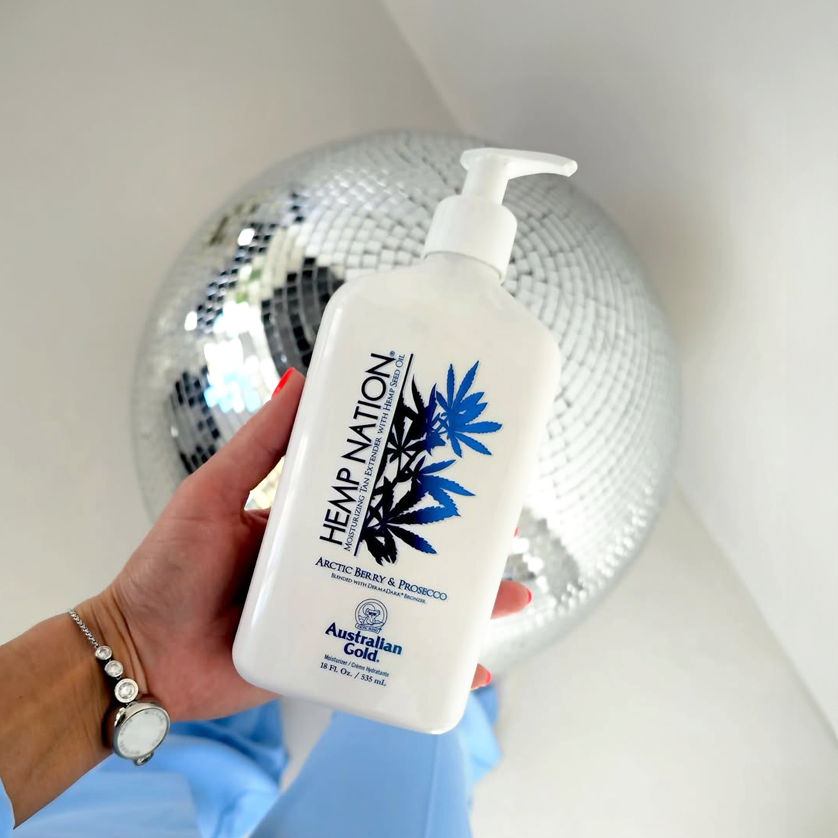Deze perfecte Hemp Nation Arctic Berry & Prosecco skincare lotion is verrijkt met Omega 3 & 5 vetzuren en beschermt tegen omgevingsstressoren om je huid in topconditie te brengen en te houden. DermaDark® Bronzer helpt je tropische kleurtje te verlengen en bovendien om geleidelijk extra kleur op te bouwen bij dagelijks gebruik, zelfs zonder blootstelling aan UV. Hydrating Complex trekt snel in, hydrateert en laat de huid fluweelzacht aanvoelen. Age Defying Blend helpt om fijne lijntjes en rimpels te verminderen.