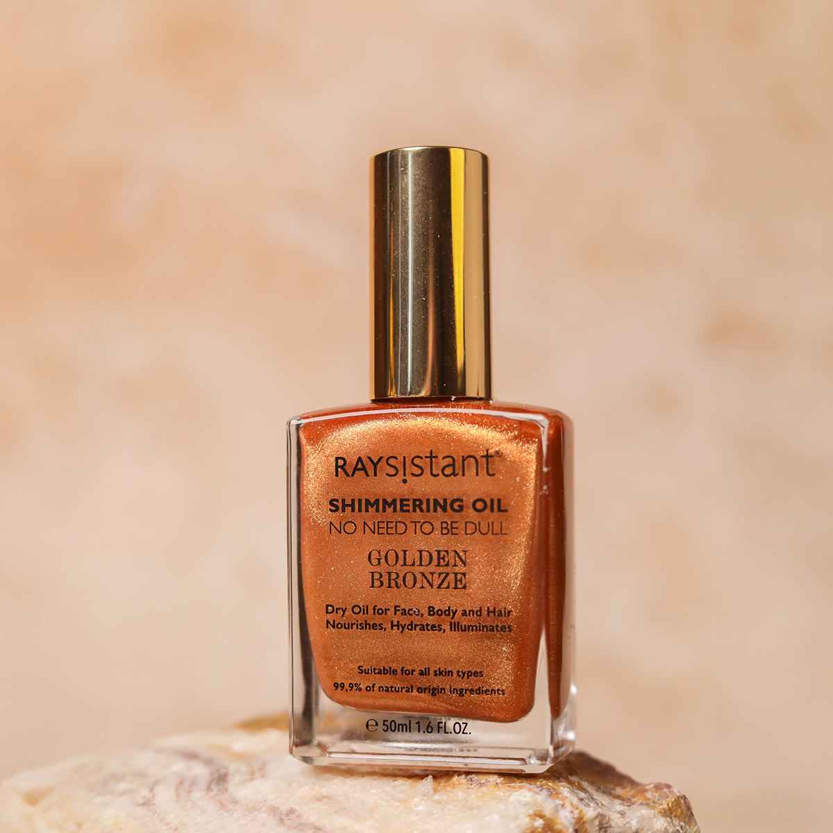 De tint Golden Bronze geeft een warme, goudbronzen gloed die bruine of van nature medium tot donkere huidtinten prachtig accentueert. Ook geschikt voor in het haar voor extra glans of een wet‑look finish.